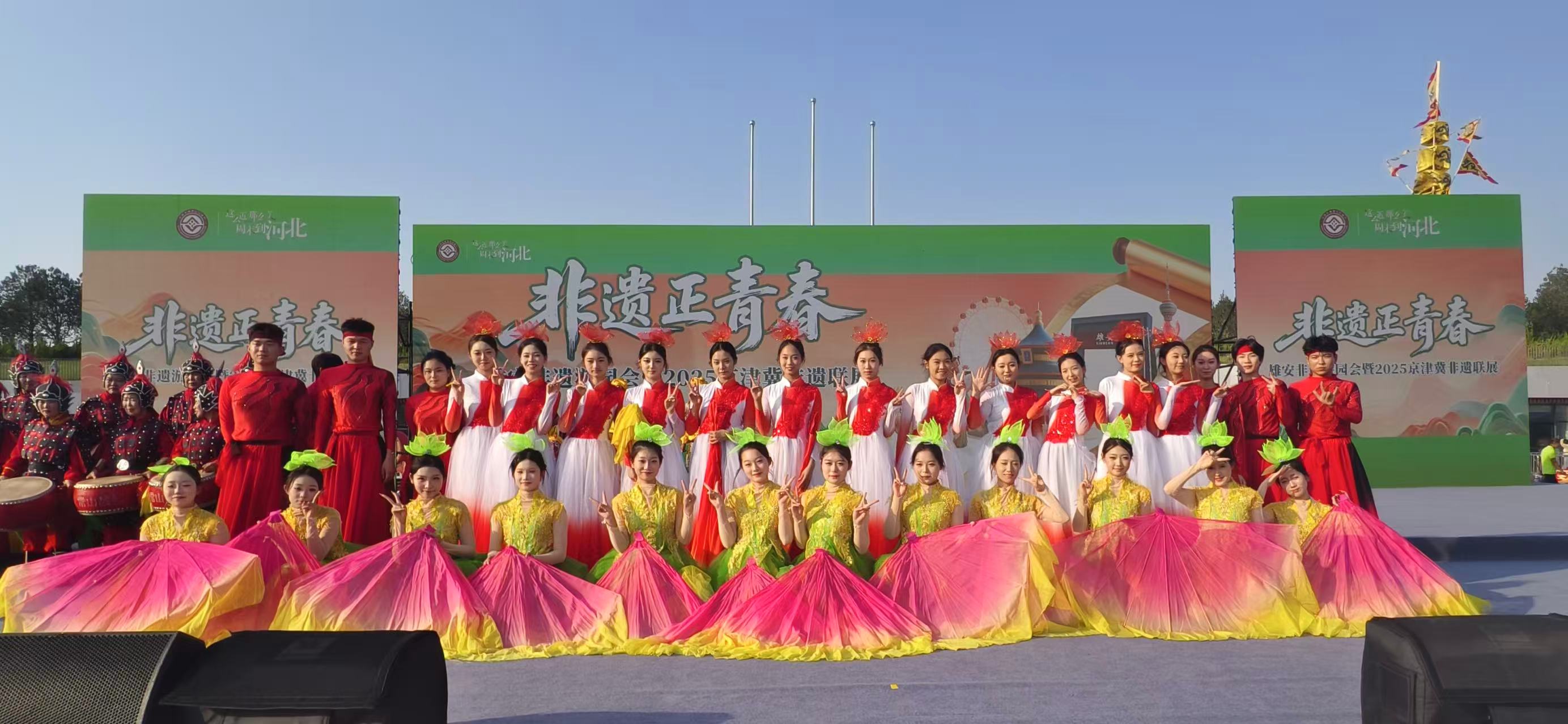 9月30日至10月7日,“非遗正青春”雄安非遗游园会暨2025京津冀非遗联展在雄安新区盛大举行,音乐学院舞蹈团受邀参加开幕式演出及“薪火课堂”非遗进校园的前期筹备与艺术指导工作。