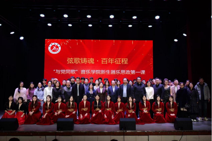 这场"与党同歌"新生器乐思政课不仅以艺术形式呈现了思想政治教育的内涵,更通过情感共鸣实现了思想价值的传递,为2025级新生的大学征程注入了坚定的精神动力。音乐学院将持续推动思政教育与艺术实践的融合创新,拓展育人路径,培养既有专业素养又具家国情怀的优秀艺术人才。