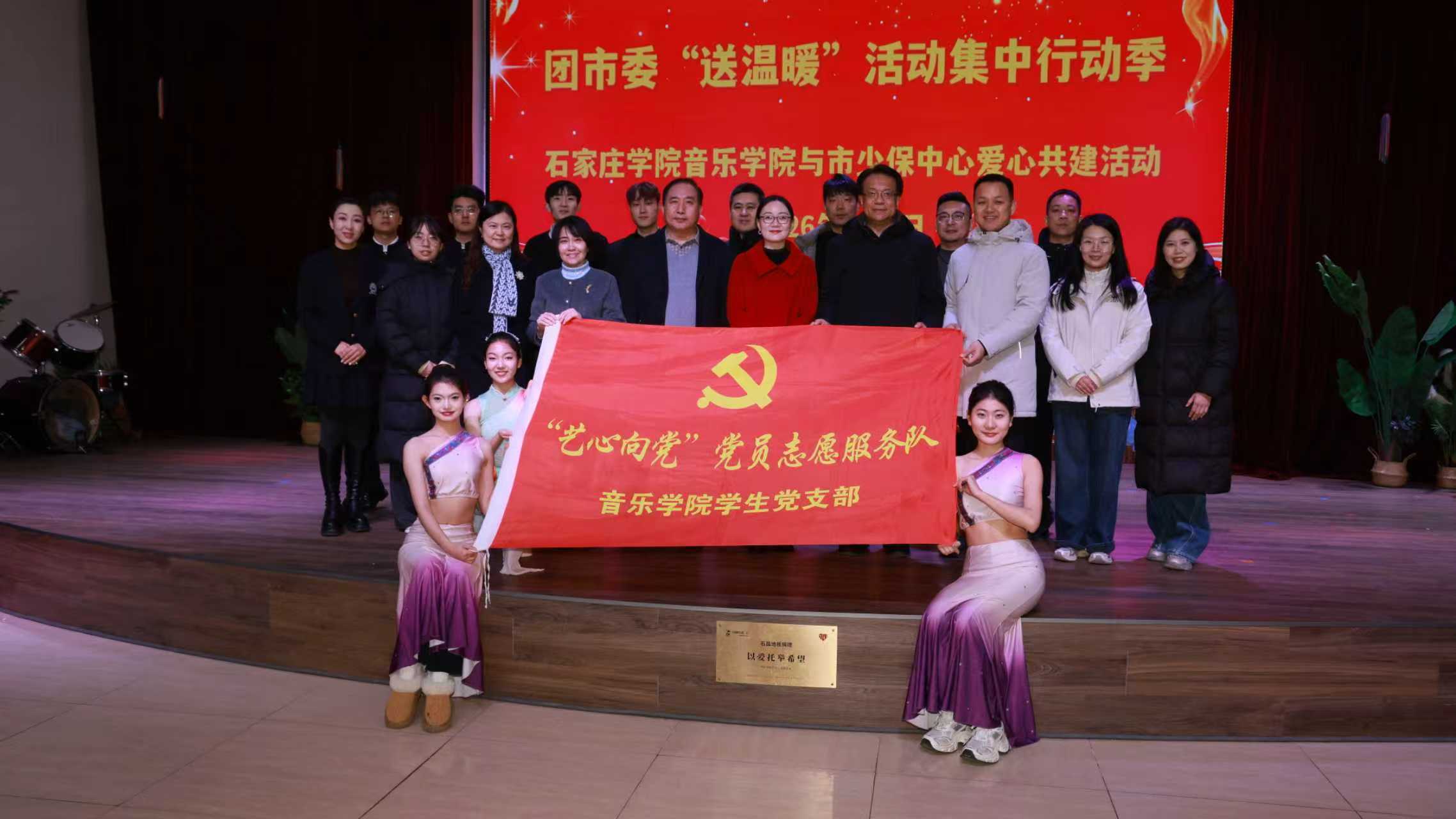 为深入推进团市委“送温暖”活动集中行动季,1月8日下午,我院携手市少工委,来到石家庄市少保中心开展“情暖少保 艺韵同行”爱心共建活动。团市委副书记、市少保中心主任、音乐学院领导班子、师生代表等20余人参加。