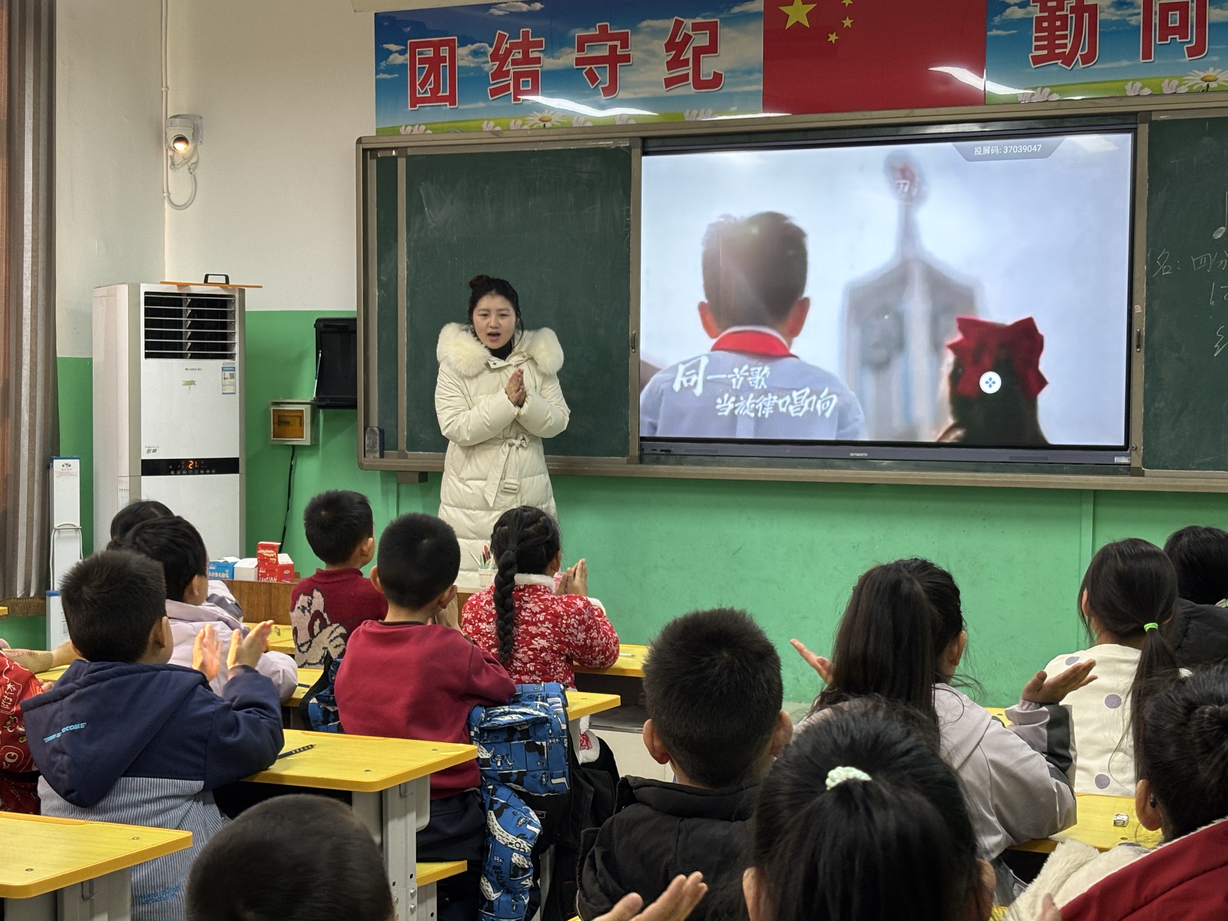 仪式结束后,音乐学院教师志愿者走进课堂,为孩子们呈上一堂生动有趣的音乐课,带领孩子们认识和拍打节奏,学唱石家庄少先队员原创主题曲《少年发光》,通过寓教于乐的教学形式,让孩子们在欢声笑语中领略了音乐艺术的独特魅力。