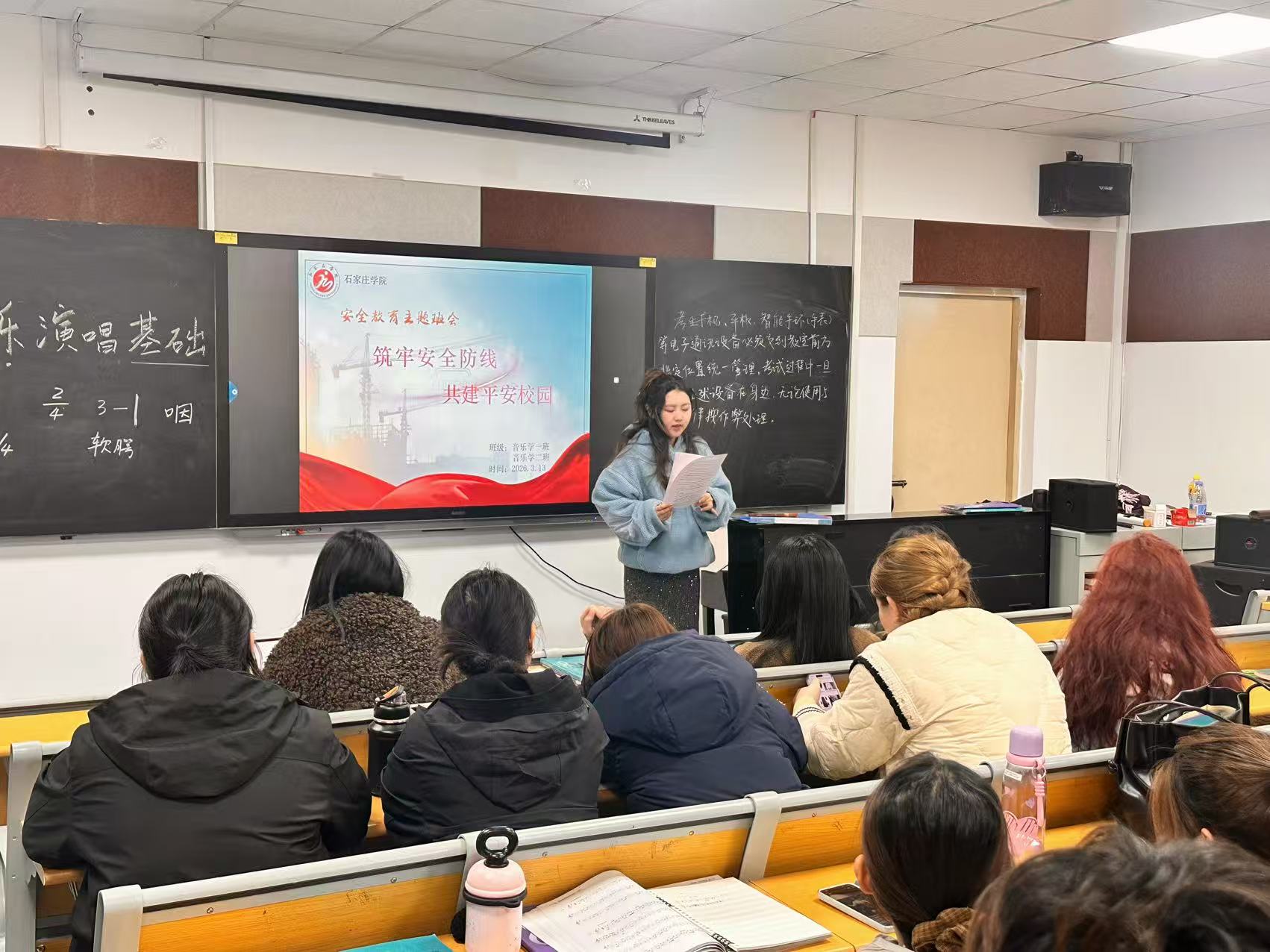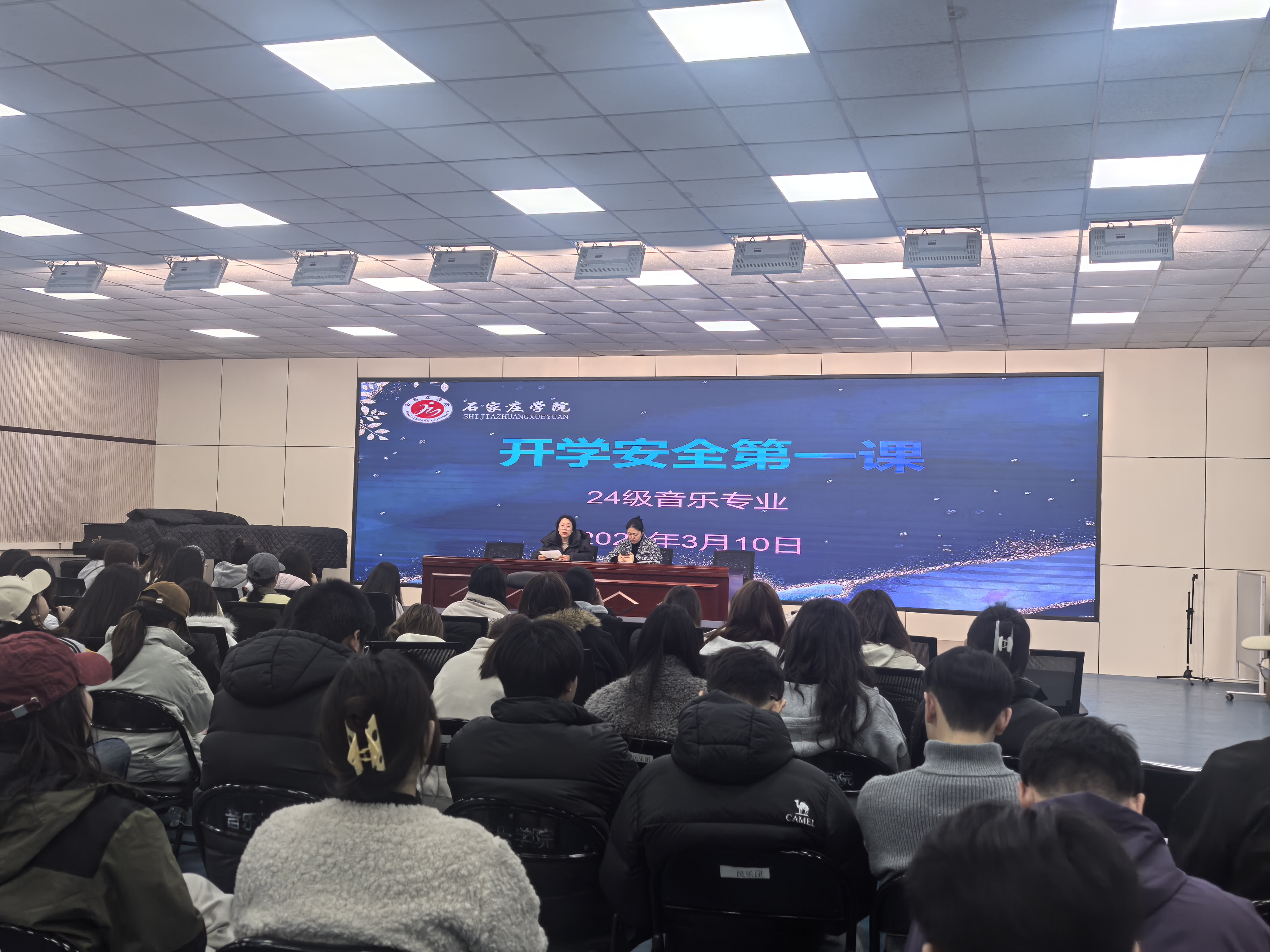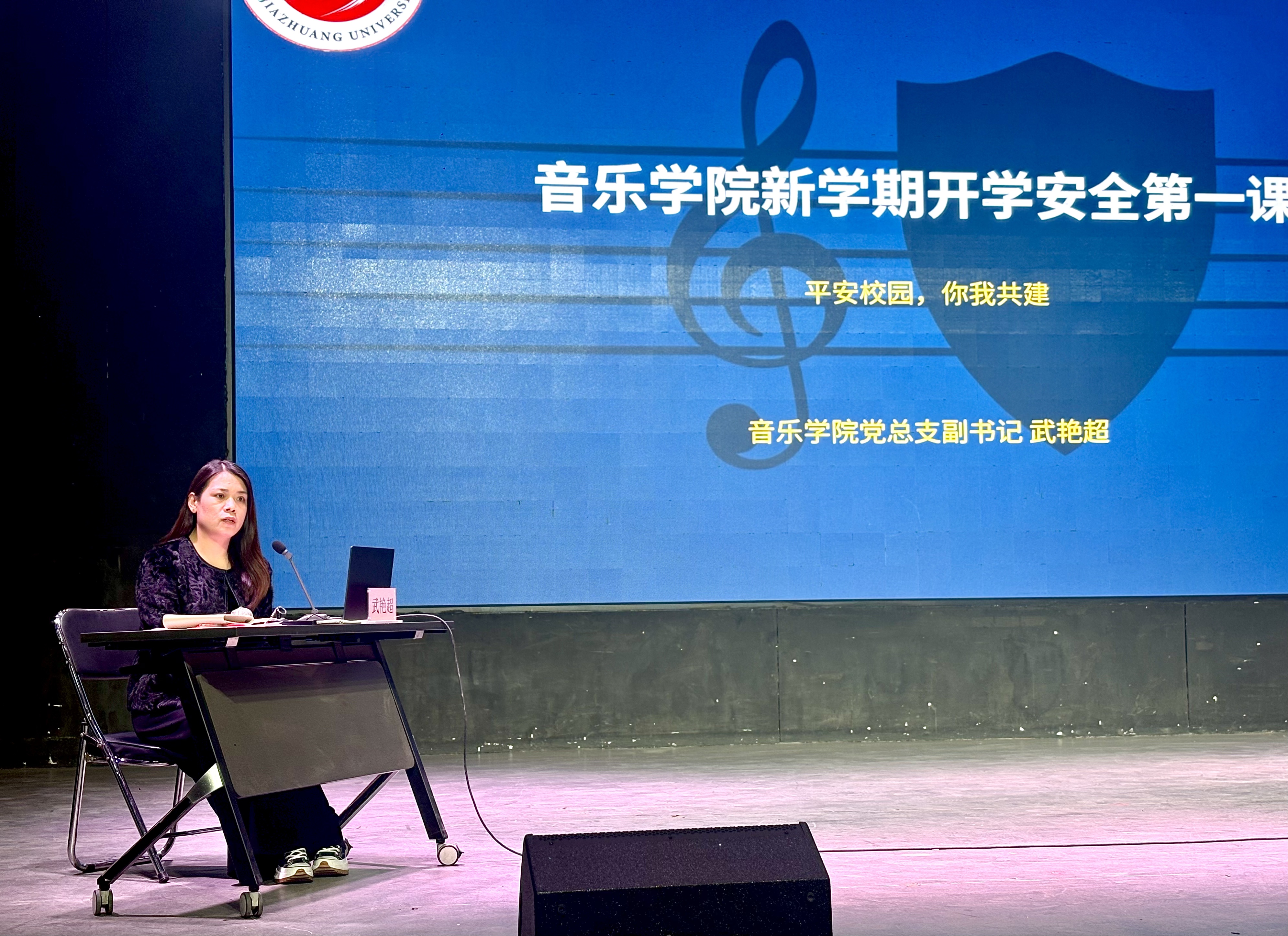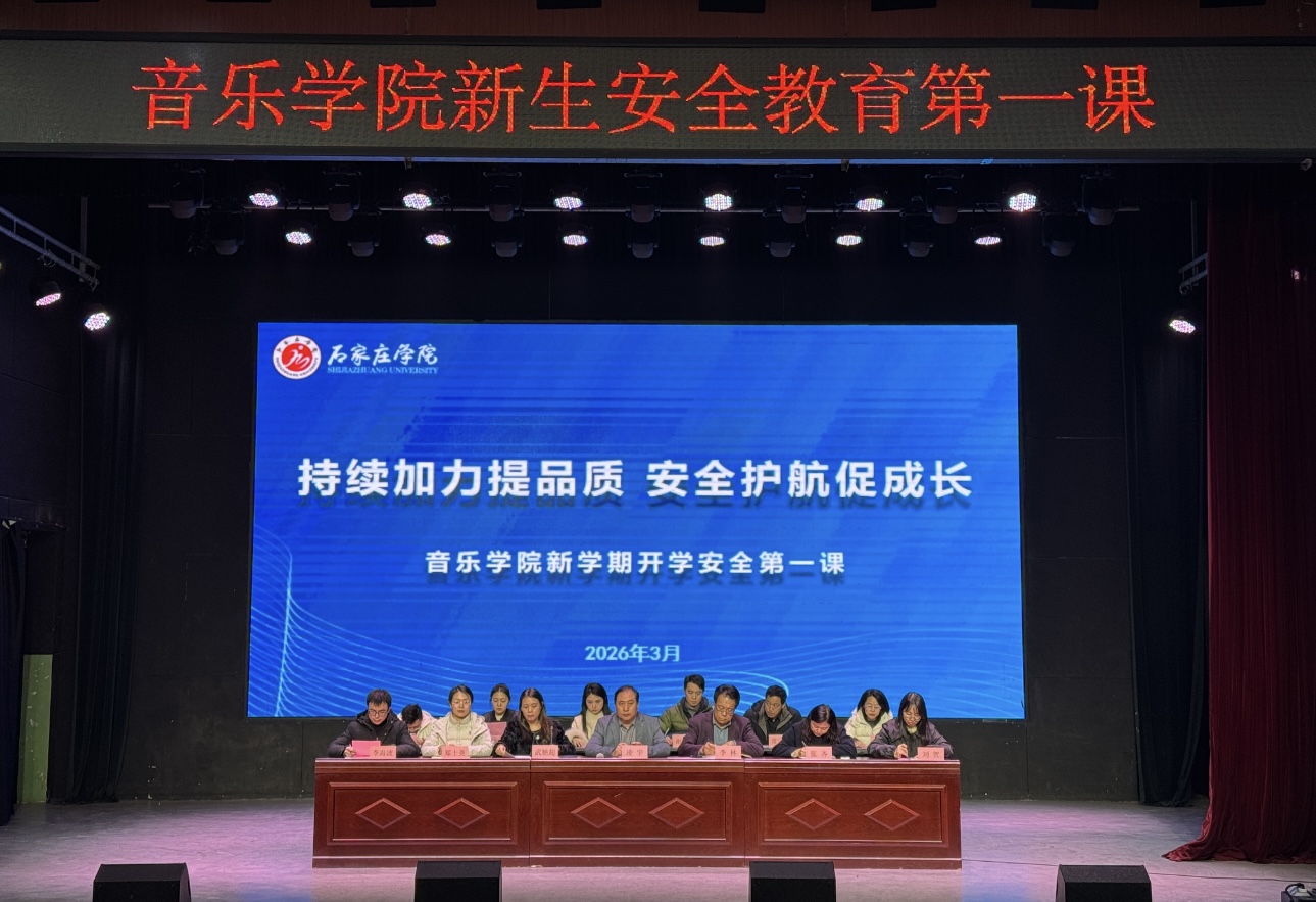 为深入贯彻落实学校春季学期开学安全工作会议精神,筑牢校园安全防线,提升全体师生的安全意识和应急处置能力,确保新学期各项工作安全、平稳、有序开展,3月12日下午,音乐学院在小礼堂召开新学期“开学安全第一课”专题大会。学院领导班子、专兼职辅导员、安全员、全体学生干部、宿舍长、以及2025级本科生参加了此次大会。大会由党总支副书记武艳超主持。